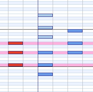 | ピアノ ロール上の 音程差 | ![]() | ![]() | ![]() | ![]() | ![]() |